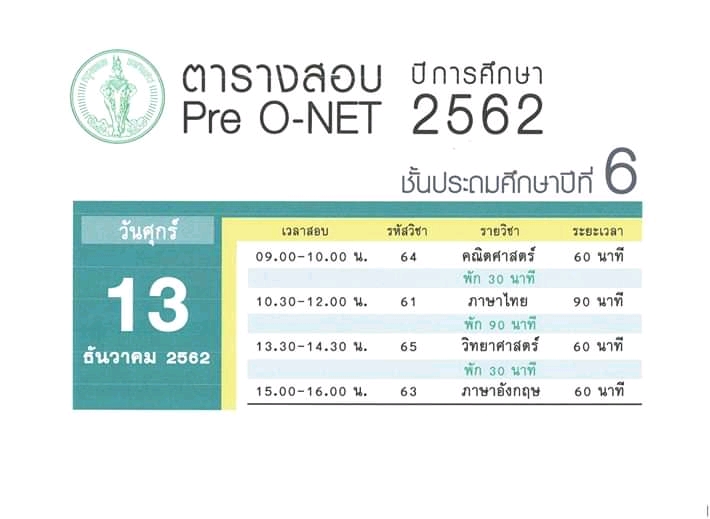 กำหนดการสอบ Pre O-NET